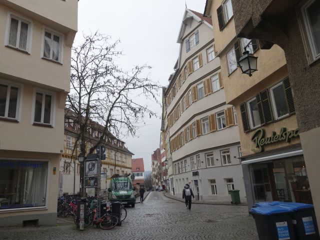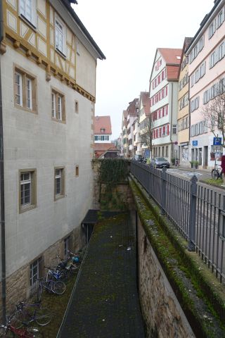 Im Westen wurde die Tübinger Altstadt vom 12. Jahrhundert an vom Neckar hinauf zum Hirschauer Tor, von dort zum Schloss, dann hinunter in die Unterstadt zum Haagtor und Schmiedtor durch eine Stadtmauer geschützt. Ob im Süden, zum Neckar hin, eine Stadtmauer oder eine Stützmauer, auf die später die Häuser der rechten Straßenseite gebaut wurden, bestanden hat, lässt sich heute nicht mehr genau rekonstruieren.